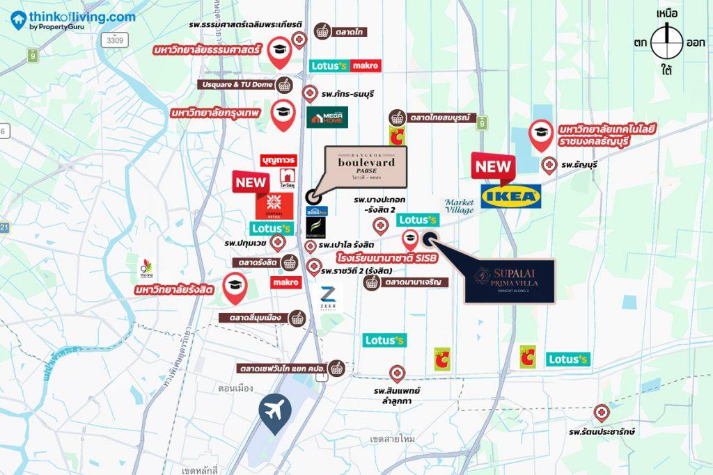 ทำเล Bangkok Boulevard Pause วิภาวดี-พหลฯ และศุภาลัย พรีมา วิลล่า รังสิต – คลอง 3