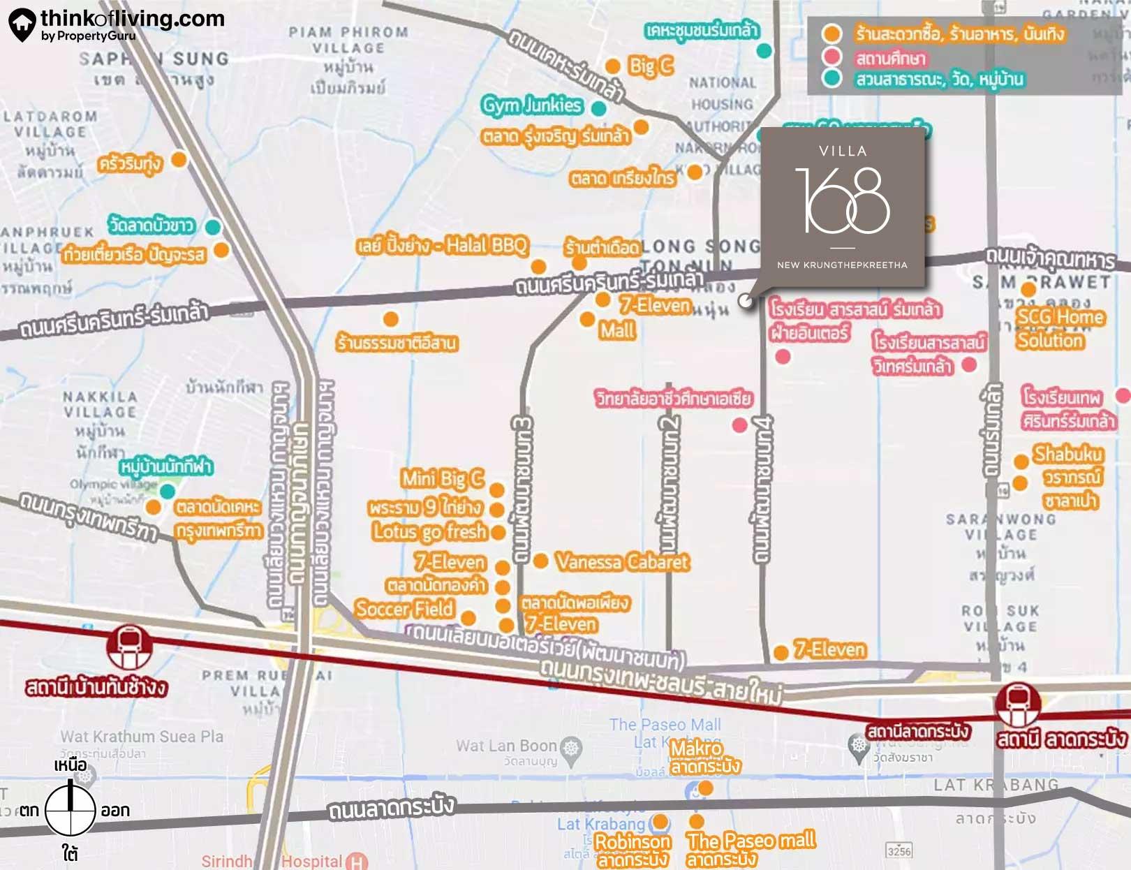 วิลล่า 168 นิวกรุงเทพกรีฑา ตั้งอยู่ตรงไหน?