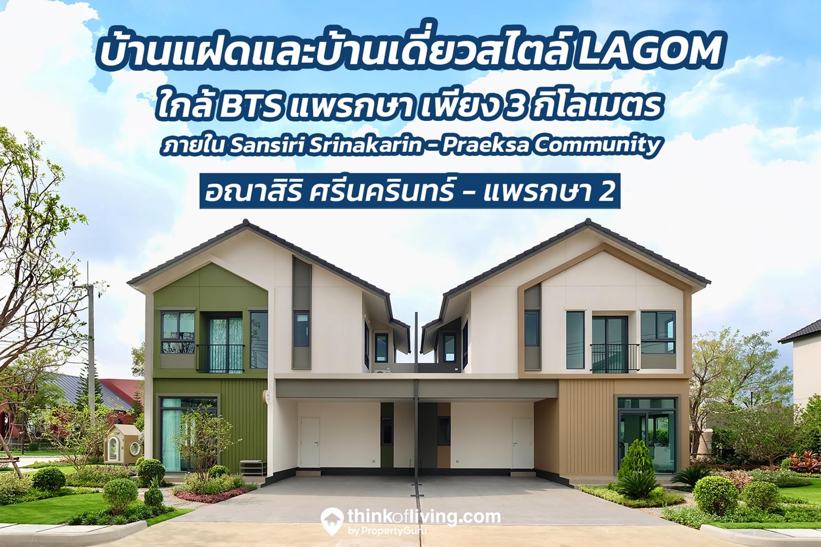 วันนี้เราจะพาไปชมโครงการ อณาสิริ ศรีนครินทร์ – แพรกษา 2 บ้านแฝดและบ้านเดี่ยวโครงการใหม่ จาก Sansiri ในราคาเริ่มต้น 4.99 ล้านบาท* ซึ่งหน้าตาของโปรดักส์ตัวนี้ก็ถือว่าโดดเด่น ไม่เหมือนใครในย่านเลยครับ ด้วยสไตล์ที่มีสถาปัตยกรรมแบบ LAGOM ได้แรงบันดาลใจมาจากบ้านในสวีเดนของชาวสแกนดิเนเวีย ก่อนจะเข้าไปชมบรรยากาศ เราได้นำ Highlights ของโครงการที่น่าสนใจ มาสรุปให้ชมกันก่อนดังนี้