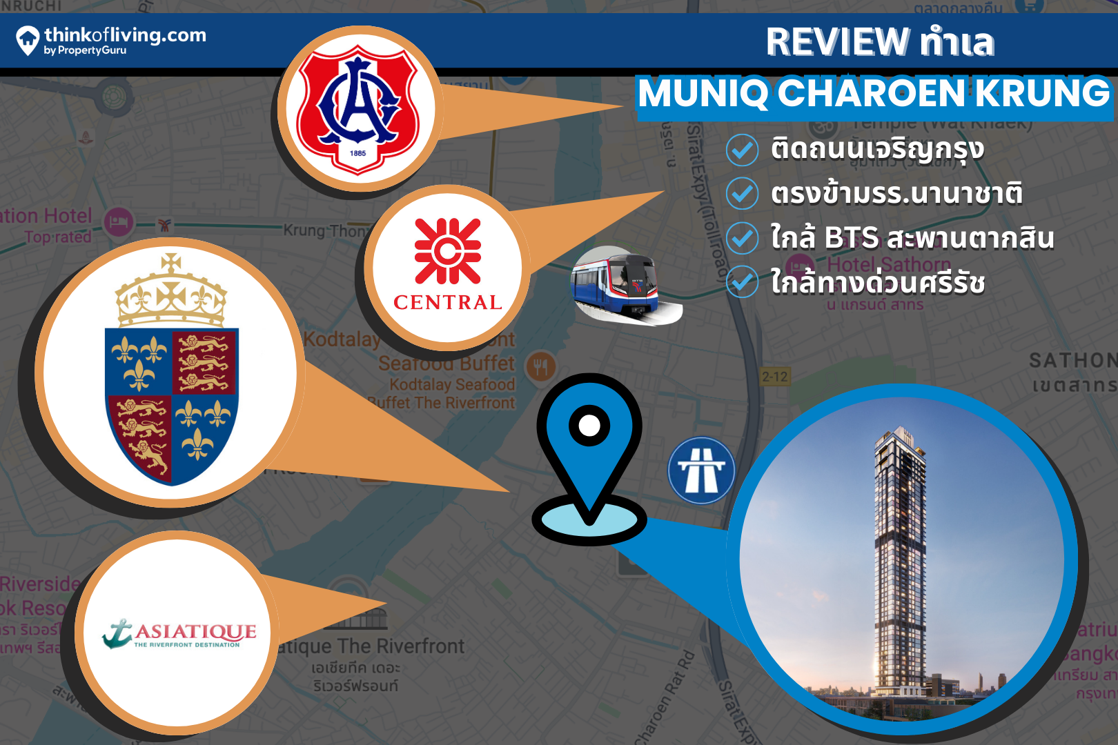 โครงการ MUNIQ CHAROEN KRUNG (มิวนีค เจริญกรุง) เป็นที่น่าจับตามองสำหรับโครงการใหม่ในย่านเจริญกรุง เพราะโซนนี้เป็นย่านชุมชนเดิม ที่น่าอยู่อาศัย จึงมีครบทั้งแหล่งท่องเที่ยว , ห้างสรรพสินค้า , โรงเรียน , โรงแรมและโรงพยาบาล พื้นที่ตรงนี้จึงมีความเจริญสูง แทบไม่เหลือพื้นที่ให้พัฒนาเป็นโครงการใหม่ๆ การที่จะคอนโด MUNIQ CHAROEN KRUNG (มิวนีค เจริญกรุง) มาตั้งอยู่ติดถนนเจริญกรุง จึงเป็นเหมือน Rare item สำหรับย่านนี้เลย